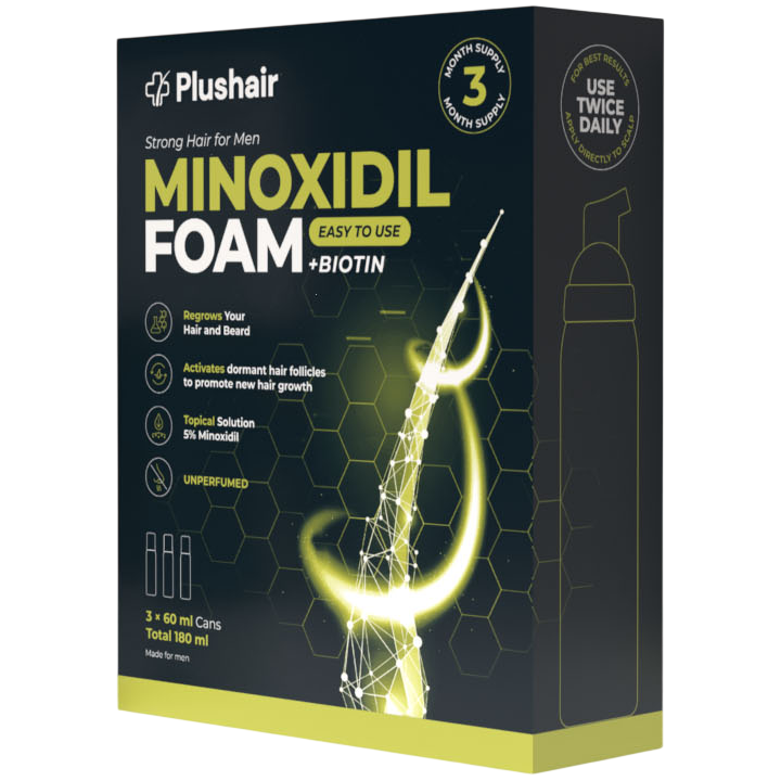 Tudtad, hogy az androgén alopecia a leggyakoribb alopeciaforma a világon? A minoxidil a leghatékonyabb ellene, ezért leggyakrabban samponok és különféle egyéb hajhullás elleni termékek összetevője ( Forrás ). A Plushair hab minoxidilnek köszönhetően már nem kell elolvasnod a hajápolási termékek összetevőit. A hajhagymák zsugorodása miatt kialakult vékonyszálú és töredezett haj ismét erős és életerős lesz a segítségével.